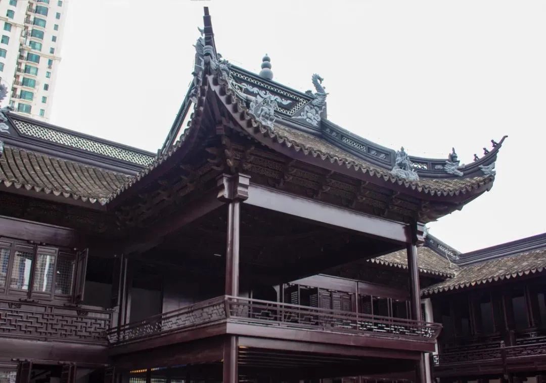 海上旧梦影痕总是惹人追述。从1884年建成到21世纪的今天,天后宫历经了三个世纪、三个时代的沧海桑田。2022年,历经了十六年的辗转、等待,天后宫迁址复建到了苏河湾中心绿地南侧,包括门楼、戏台和东西看楼,那些清朝老构件一点也不浪费地全部被用于复建建筑上,海上记忆得以保留、传承并焕新。见证风雨沧桑的古建筑,依然汲取苏河之灵气,引发人们追忆往昔的逝水年华。