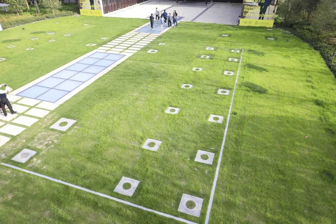 下了看楼,穿过草坪,登临到邻近的天桥上,向后方回望去,可以看到草坪处留有数块石桩,勾勒出一大片宏伟殿宇,可以想见当初带抱厦大殿的风采。现在的天后宫并不完整,被移走的大殿,是通过在绿地广场中央以安装柱础的景观形式重现,以提示原有大殿的位置,保留住城市的记忆。