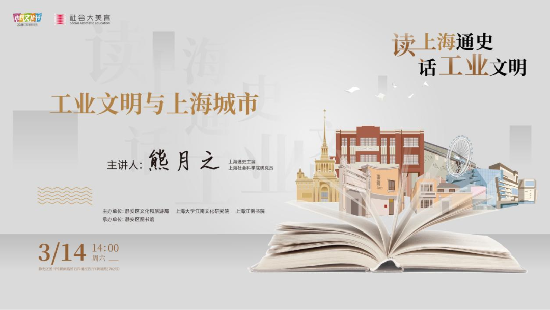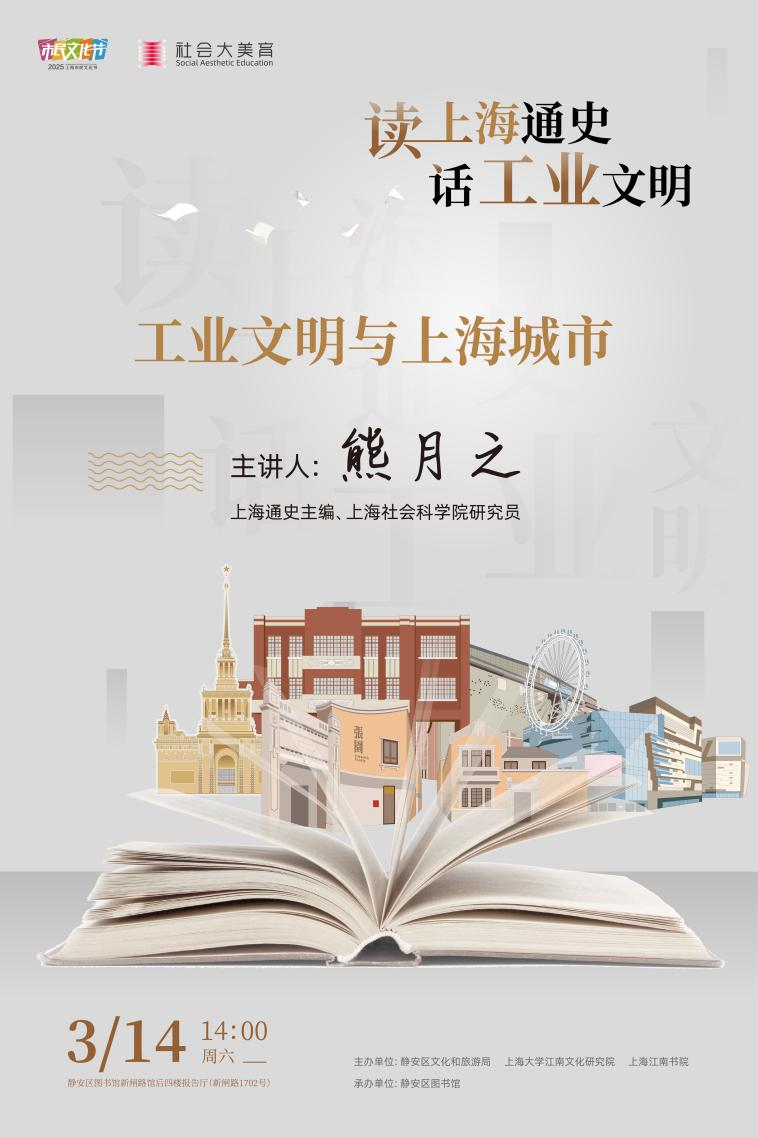 新修《上海通史》经众多学者十多年努力,以31卷33册的规模,呈现出一个具有丰厚文化底蕴、充满蓬勃生机的国际化大都市的古今演变。2025年由上海市静安区文化和旅游局、上海大学江南文化研究院、上海江南书院主办,上海市静安区图书馆承办的“读上海通史,探静安文脉”系列讲座,获得广泛好评。2026年我们推出“读上海通史”系列第二季——“读上海通史,话工业文明”,邀请熊月之、诸大建、宋钻友、徐涛、张秀莉、叶舟、翟海涛、严斌林等专家学者,聚焦“工业文明”话题,深入探讨上海如何从一个普通港口城市跃升为近代中国工业摇篮,又如何推动了中国的现代化进程。邀您共赴一场贯穿历史与未来的城市文明探索之旅。
