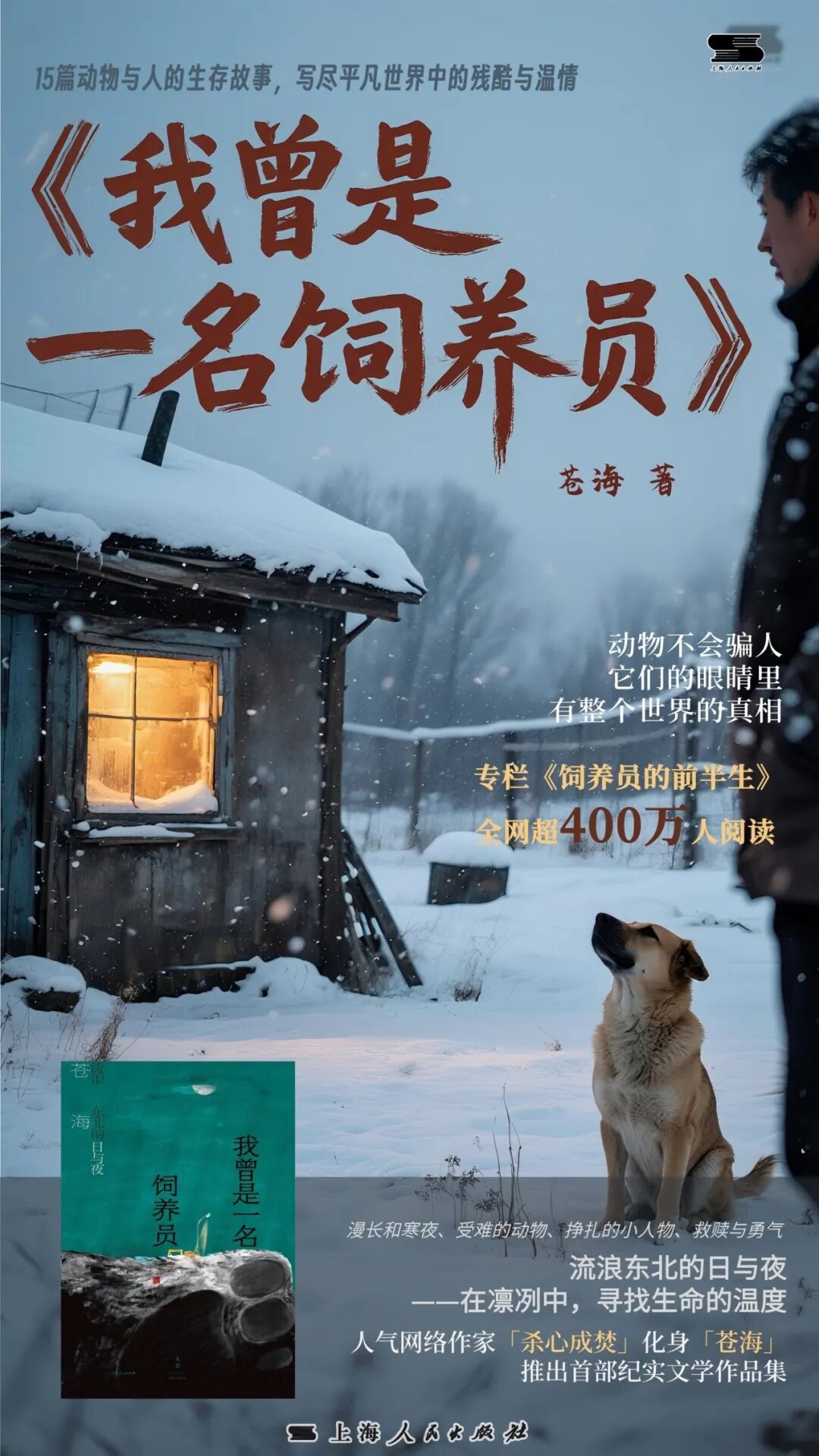 画面灵感来源于书中《土狗老白》的故事:穷困的作者受命掩埋处理老板的病狗,却在看到狗奄奄一息的样子时心生怜悯,筹钱为其治病,并租了间破仓库共居,一人一狗有了临时的“家”。病愈后的狗与他形影不离,伴他度过那段艰难时光。字里行间虽透出生存的艰辛,却更闪烁着人与动物彼此救赎的温情光芒,正如海报所示:冰雪覆盖下,总有一盏暖灯为你点亮。