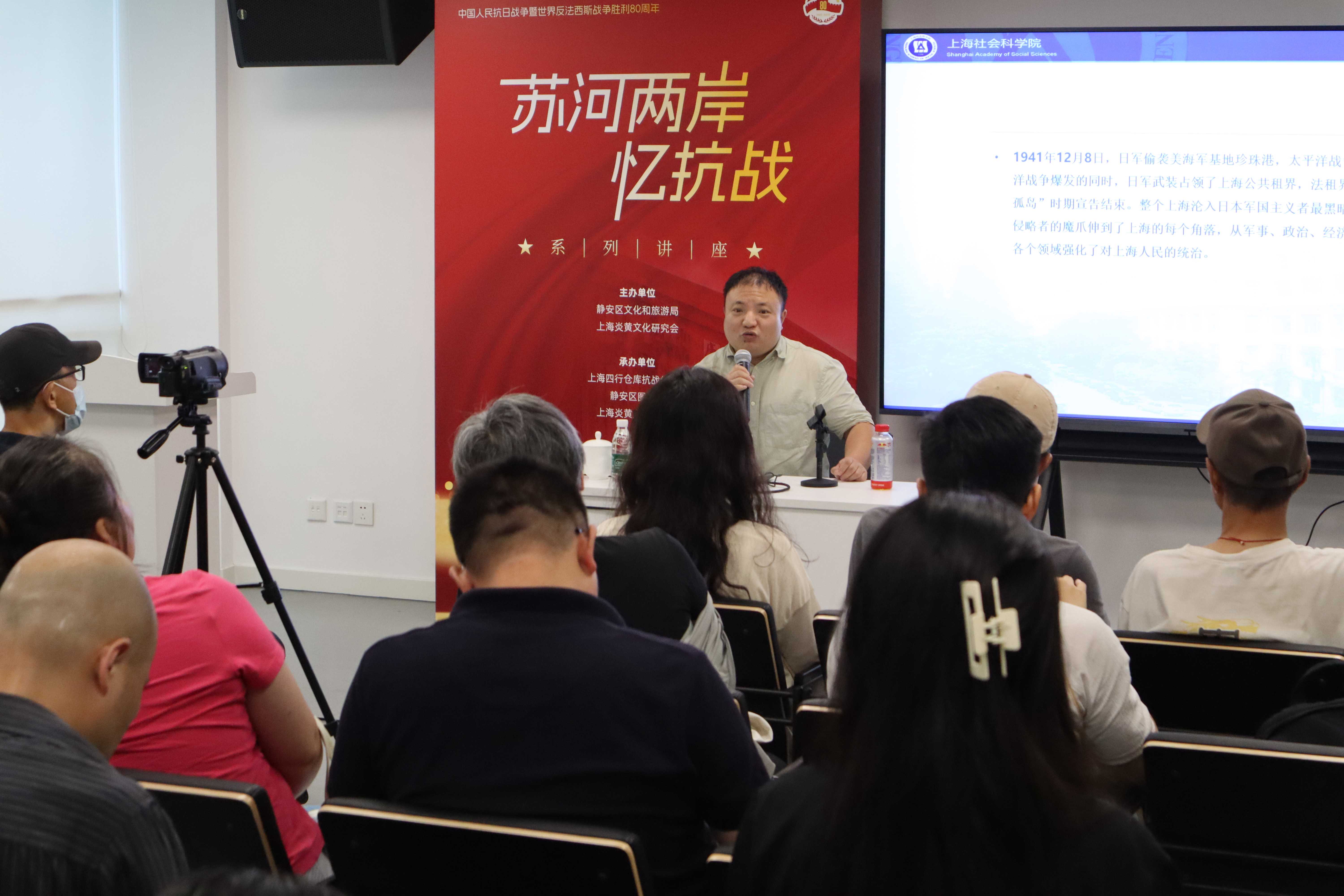 2025年是中国人民抗日战争胜利80周年暨世界反法西斯战争胜利80周年。岁月无声,历史有痕。八十载光阴流转,抗战的烽火岁月依然铭刻在中华民族的记忆深处。为纪念这一历史性时刻,传承和弘扬伟大的抗战精神,满足广大市民群众对申城往昔轨迹、人文历史的求知欲,上海市静安区文化和旅游局联合上海炎黄文化研究会共同主办,上海四行仓库抗战纪念馆、静安区图书馆、上海炎黄文化宣讲团承办“苏河两岸忆抗战”系列讲座。