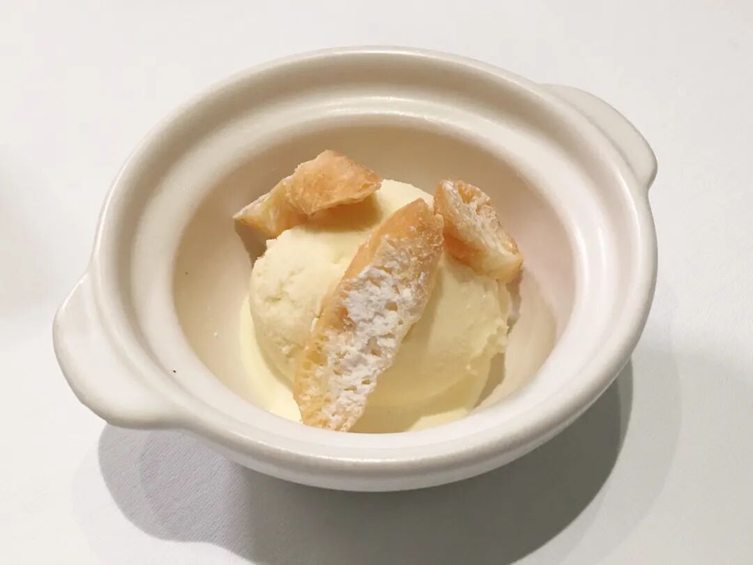 福1015的点心也是一绝,腰果苔条酥、黄鱼煨面、鹅肝酱葱油饼、秃黄油汤包、朗姆酒冰糕都是我的最爱,值得一尝的还有葱油饼油条配豆浆冰淇淋。葱油饼、油条当然是精制,迷你呈现,再让鹅肝酱烘云托月,或让豆浆凝固成经典西式甜品而不改初衷,点心师的幽默感使这两套小点心得到升华,选其一,为整场餐食收尾,然后轻轻击掌。